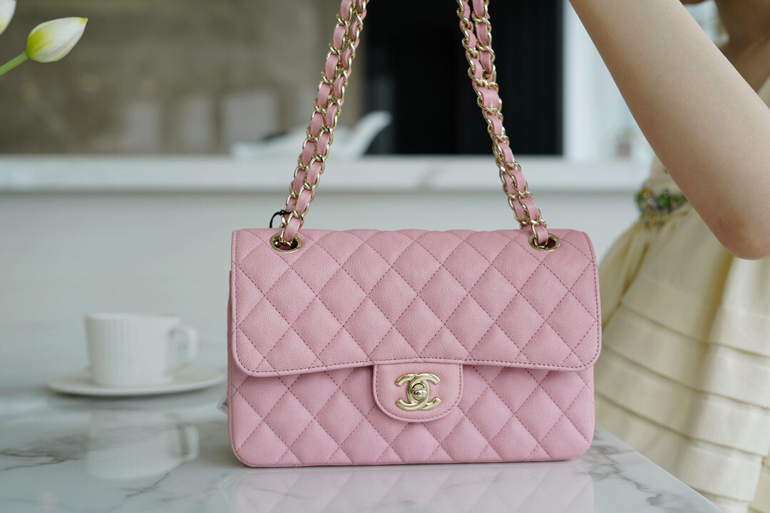 𝐂𝐇𝐀𝐍𝐄𝐋 Classic Flap France 🇫🇷 𝐇𝐚𝐚𝐬 Original Caviar🐂 Washed Fetal Cow Small 🌸Pink