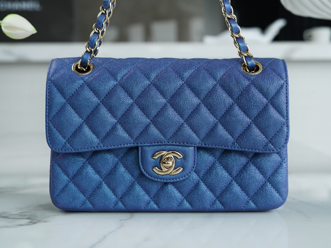 𝐂𝐇𝐀𝐍𝐄𝐋 Classic Flap washed cowhide is made from the most delicate calves just born Washed fetal cow Small Starsky Blue💙
