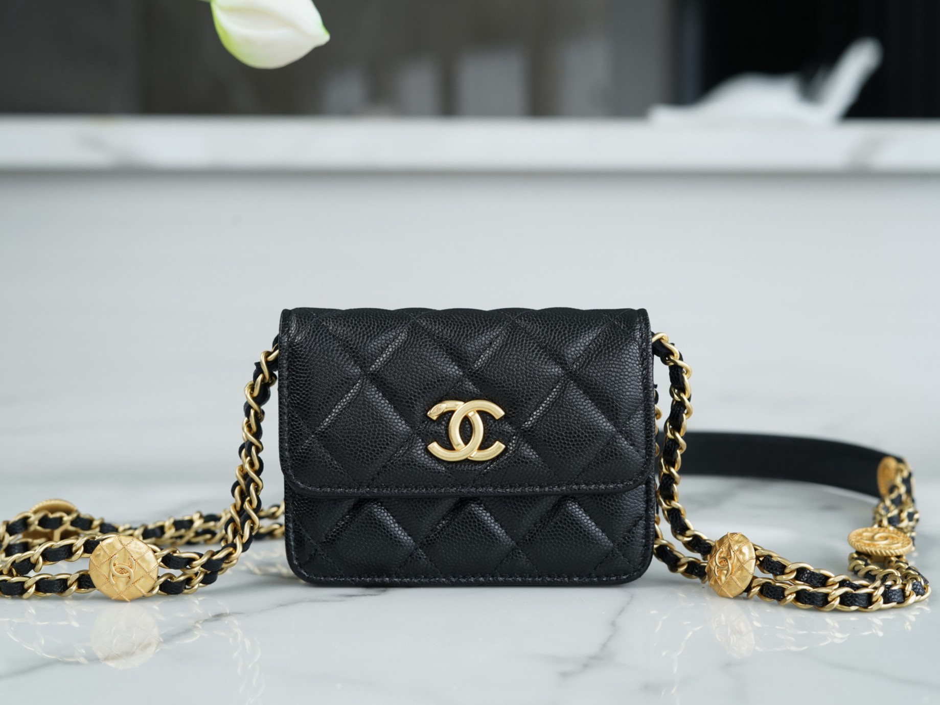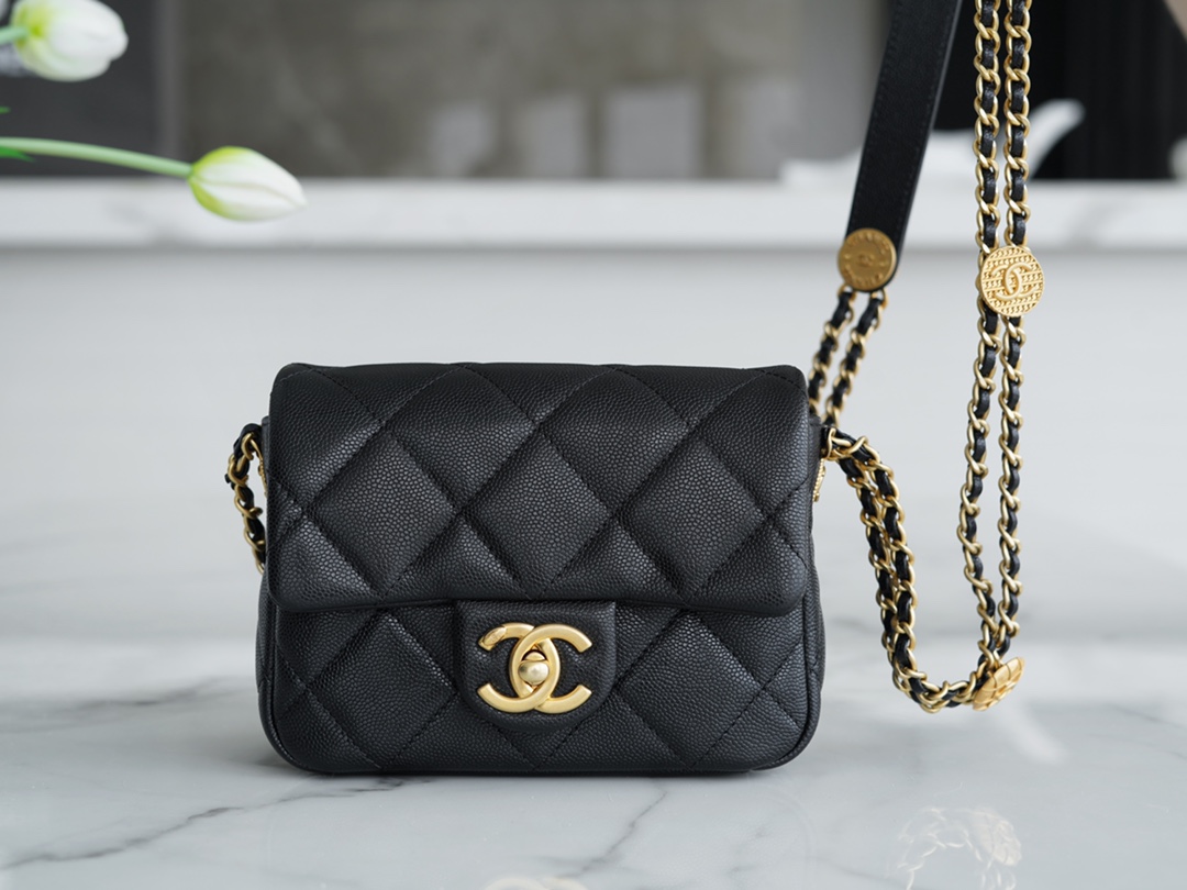 𝗖𝗛𝗔𝗘𝗡𝗟 ✦𝟐𝟐𝗣 spring and summer new 𝟐𝟐 handbag authentic tail leather black gold