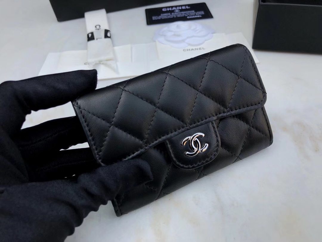 𝗖𝗛𝗔𝗘𝗡𝗟𝗖𝗖𝗹𝗮𝘀𝗶𝗰𝗙𝗹𝗮𝗽𝗽𝗽 adopts the "GR" first-class lambskin classic card package • • Black silver