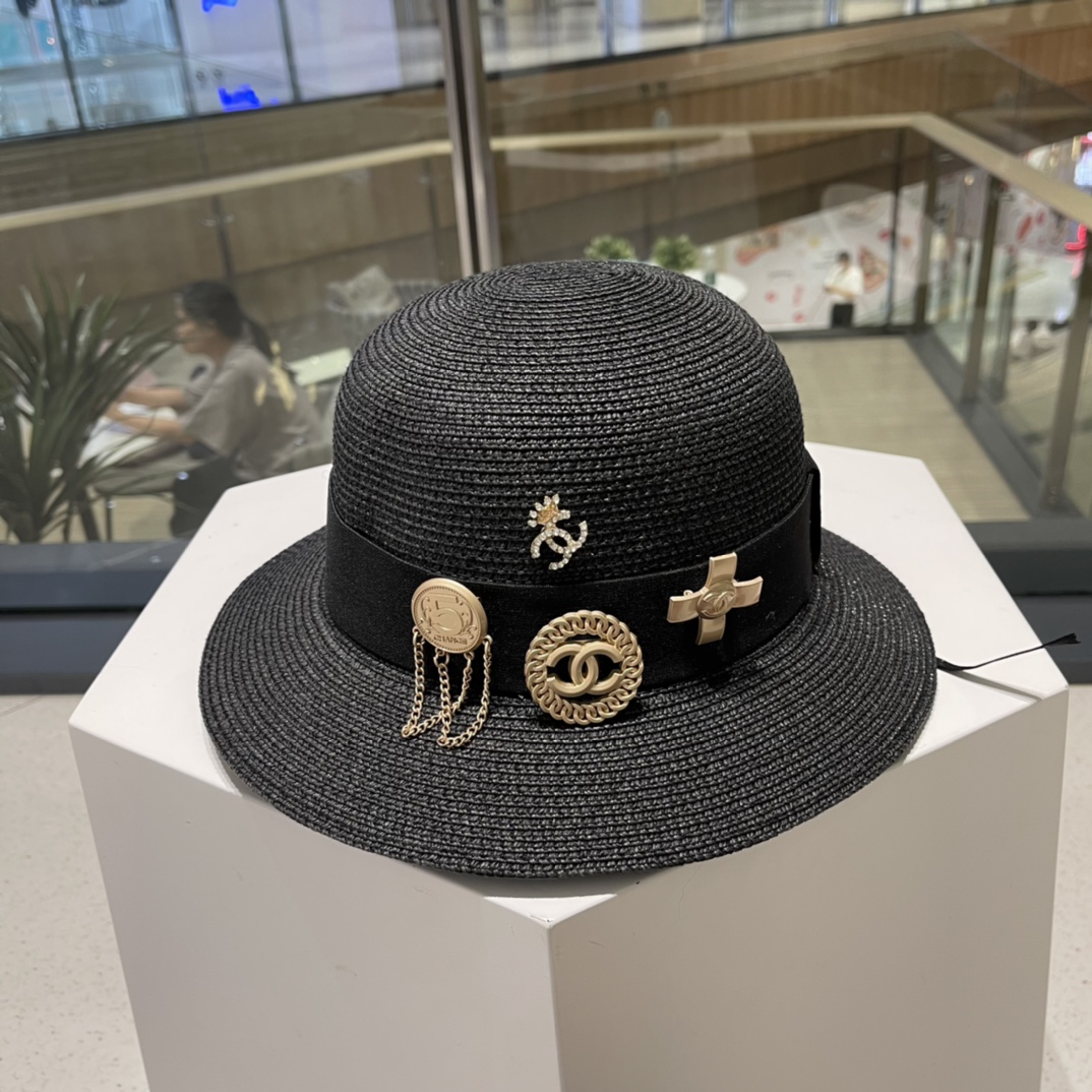 Chanel Straw Hat, Sun Hat, Sunshade Beach Hat, Head Circumference 57cm