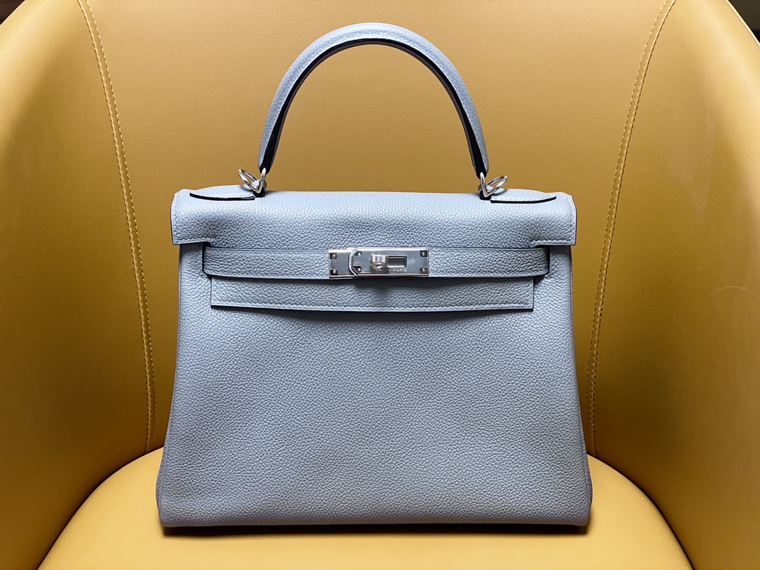Kelly28 inseam j7 linen blue togo leather silver buckle
