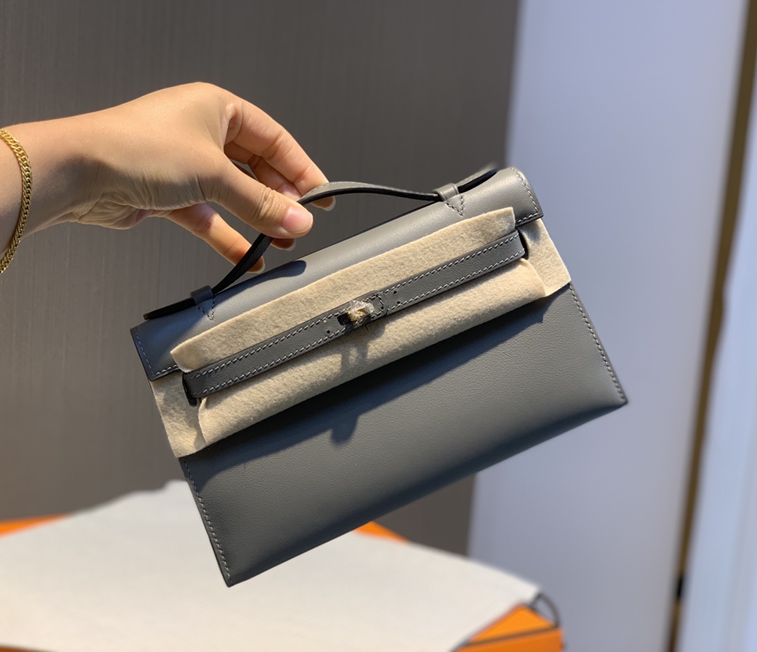 Mini Kelly second generation epsom leather asphalt gray gold buckle