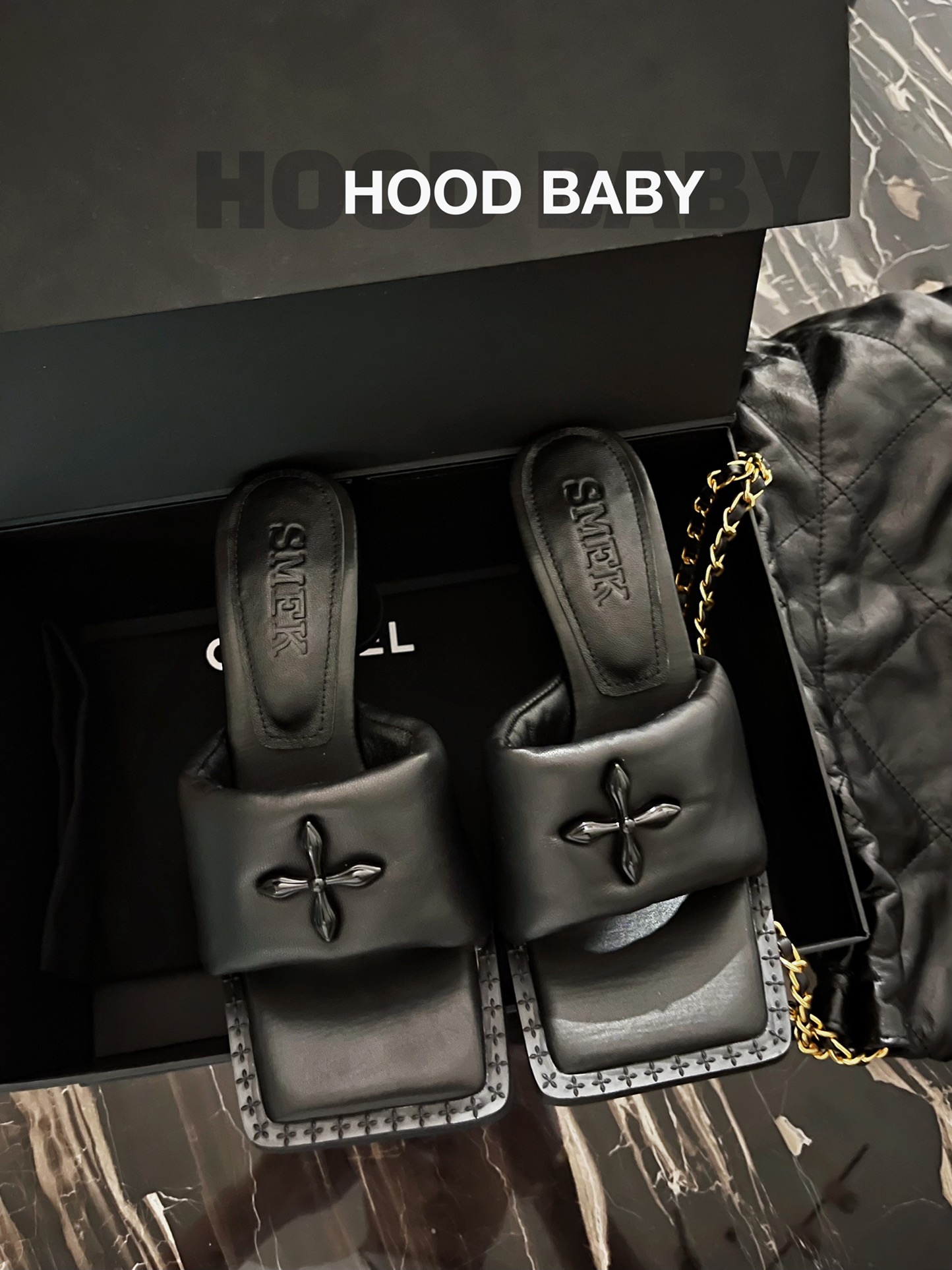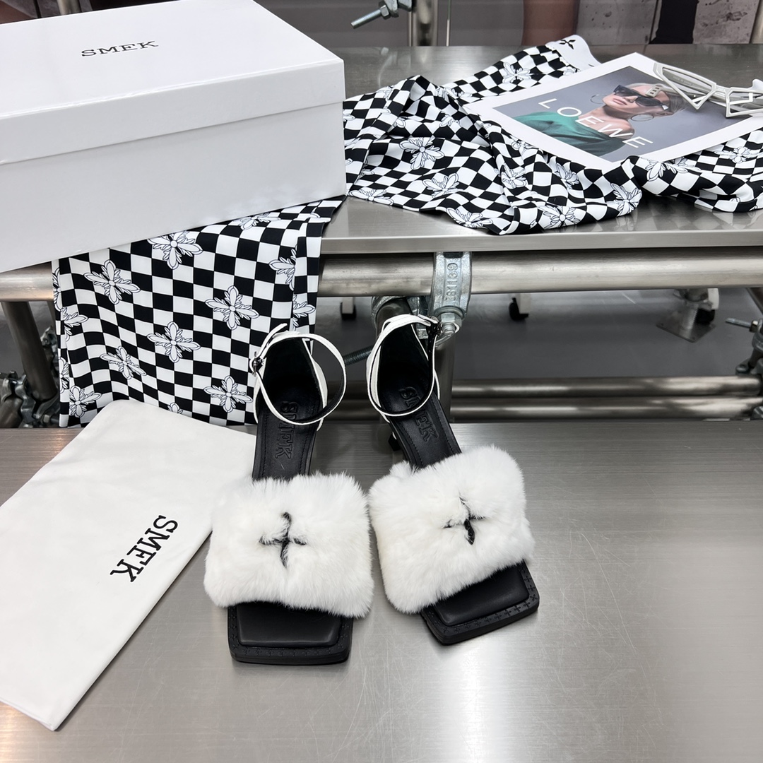 𝐒𝐌𝐅𝐊 |𝟐𝟎𝟐𝟐/𝐒𝐒 𝐧𝐞𝐰 SMFK 2022 Cross Flower First One Strap Thin Heel Cross Otter Rabbit Fur Sandals